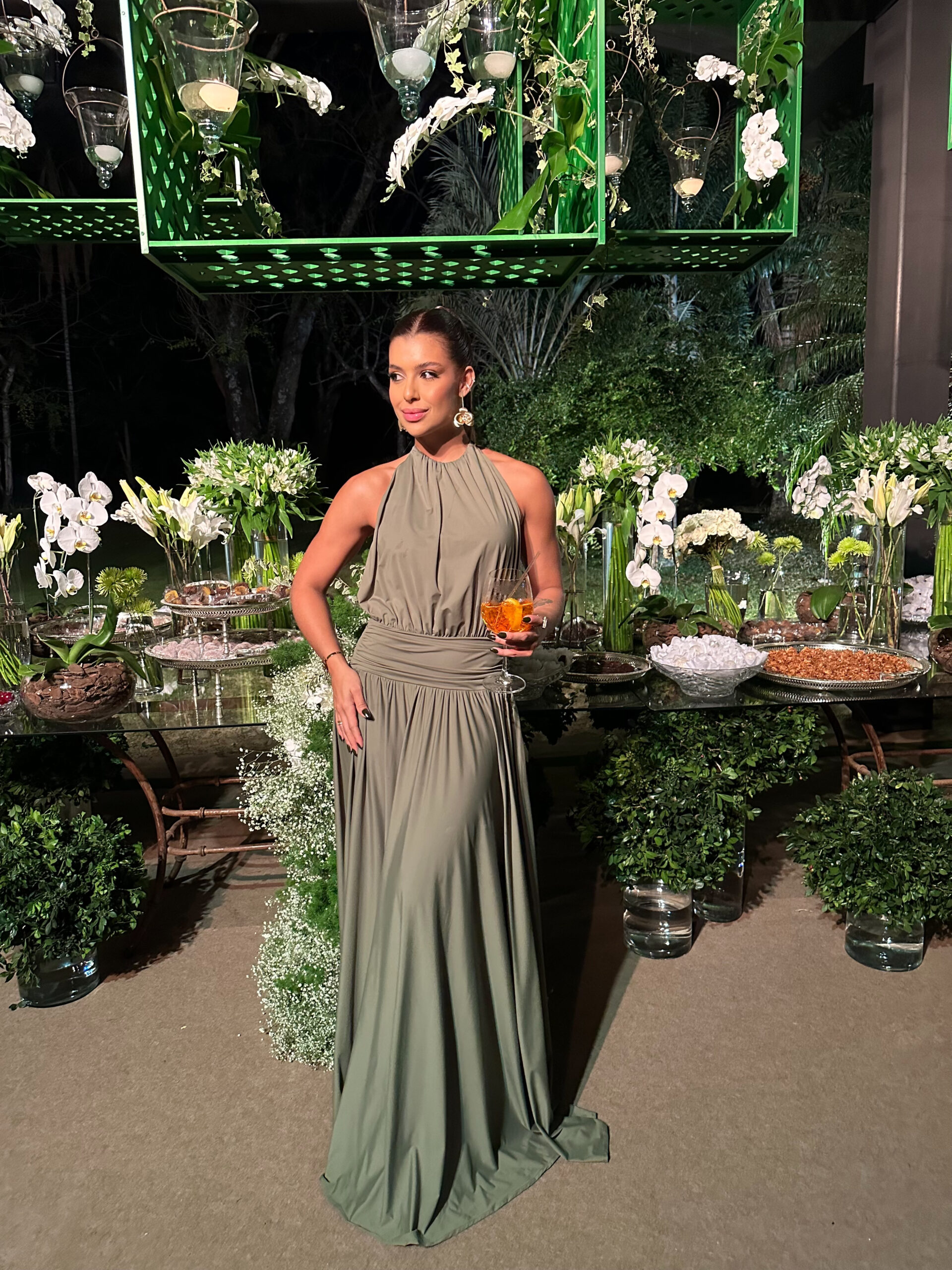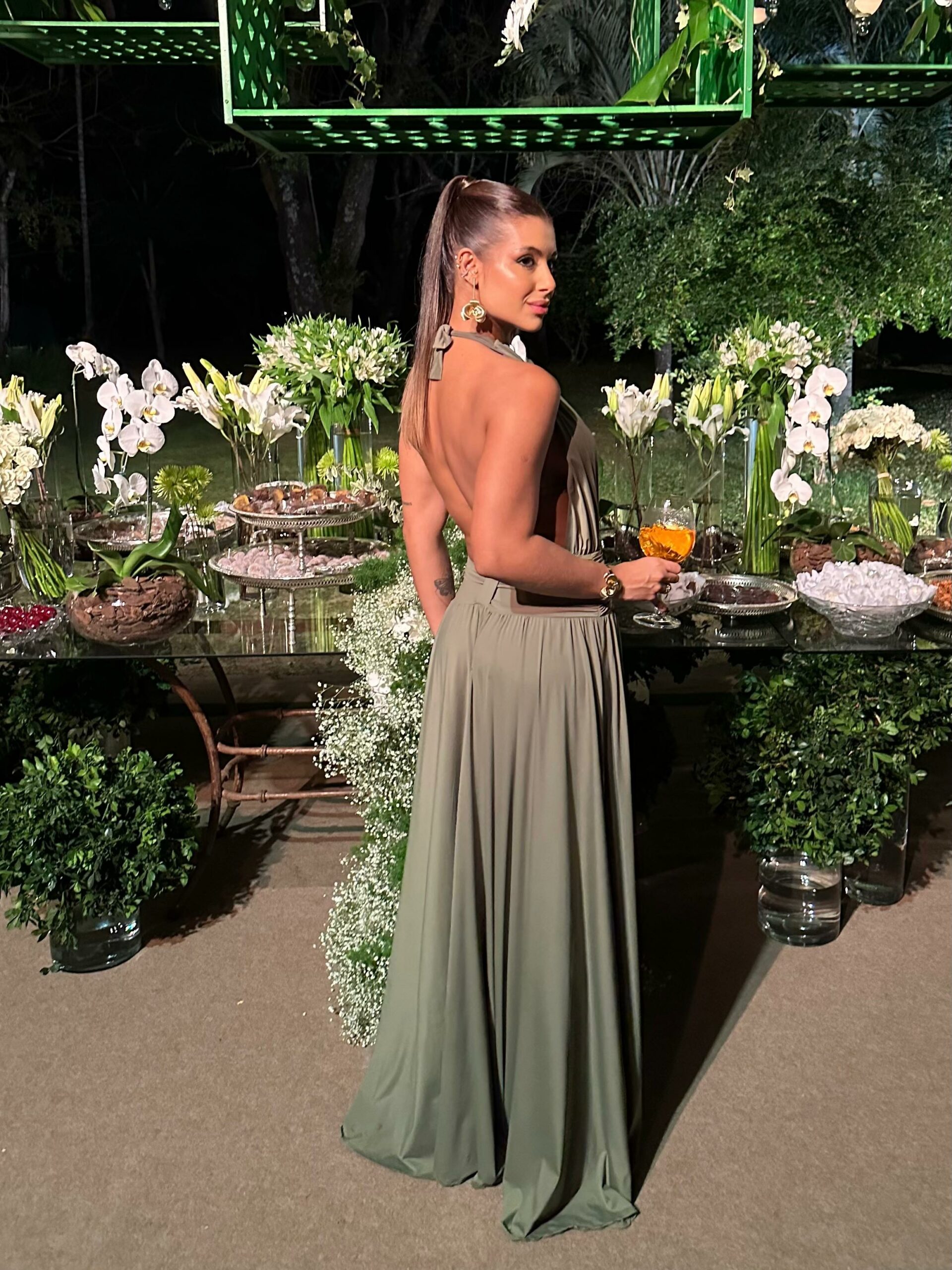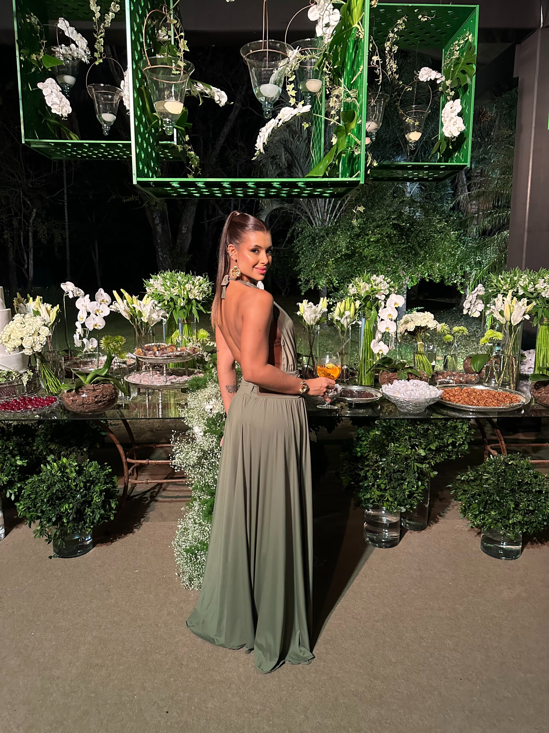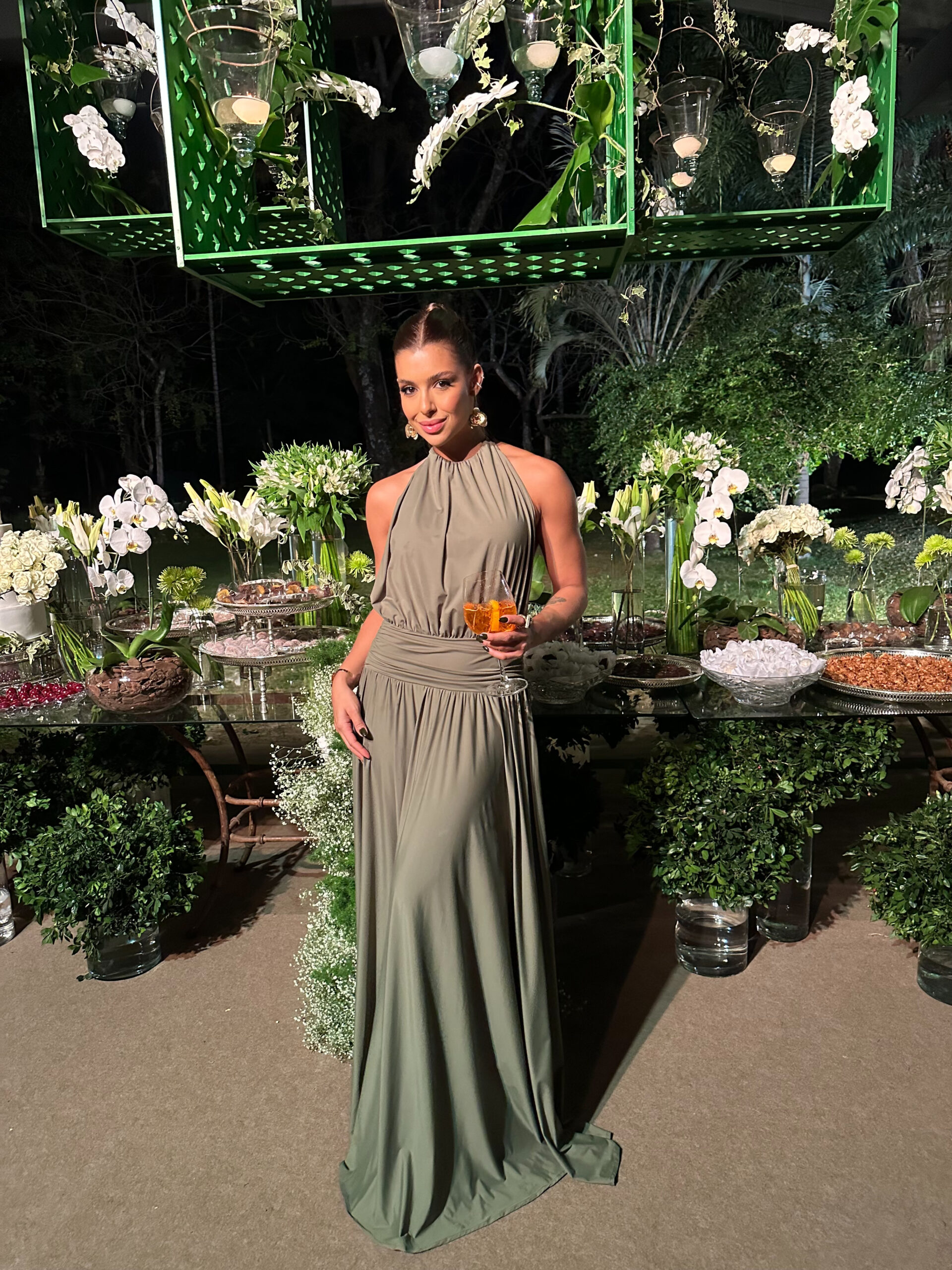 O vestido Áurea é feito de uma malha premium shine exclusiva, caimento fluido, super macio e bastante elasticidade. Essa elasticidade, faz com que o vestido modelo o corpo perfeitamente, além da modelagem que é impecável.